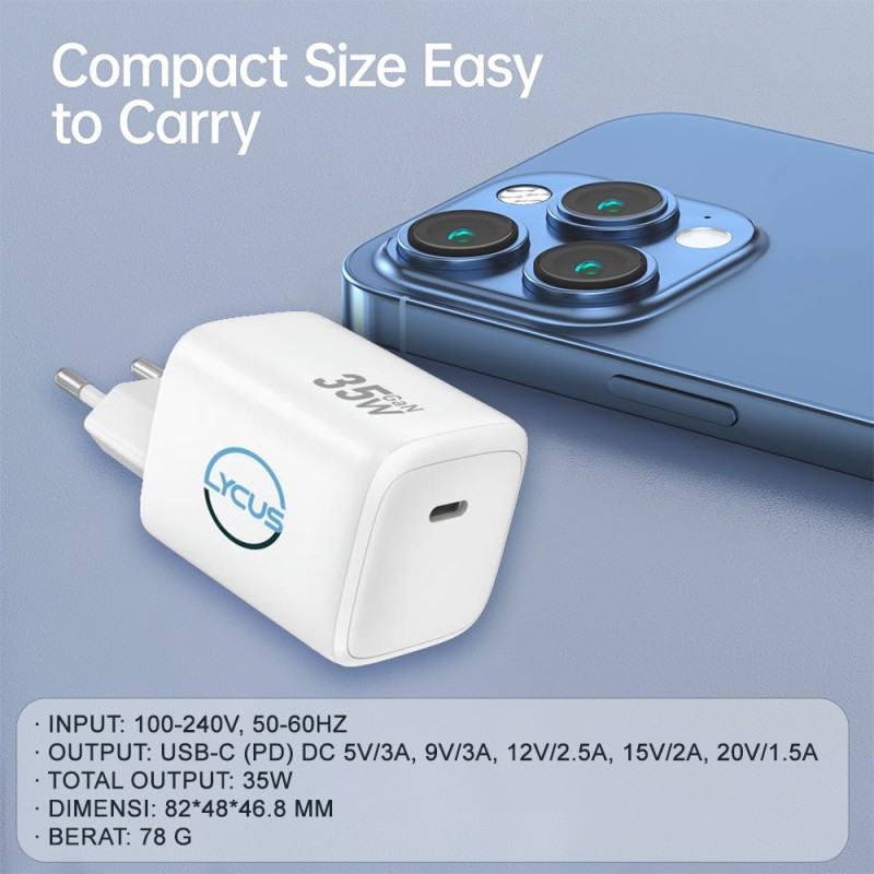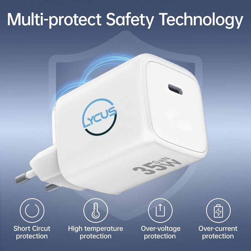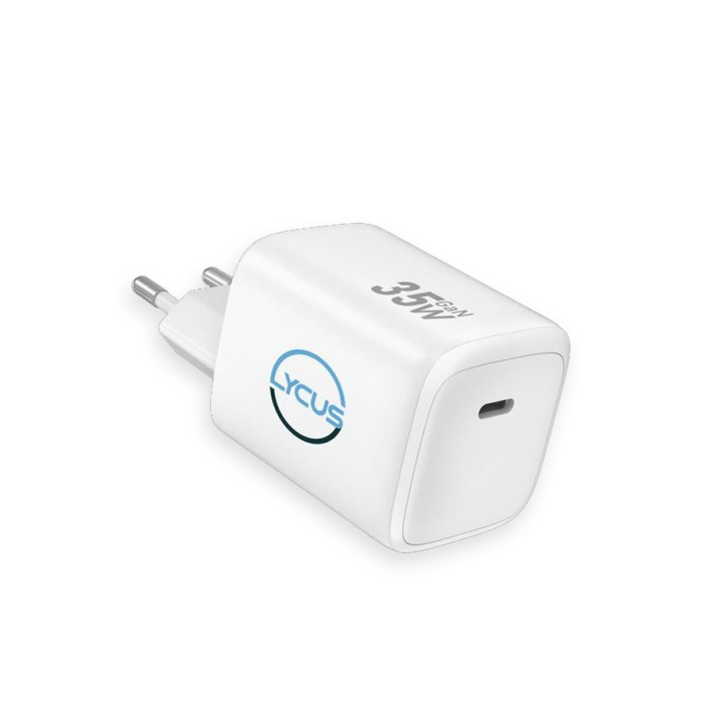 LYCUS power delivery wall charger adaptor 35W dengan Port USB-C ini memungkinkan Anda mengisi daya dengan cepat, baik di rumah, kantor, maupun saat bepergian. Ukurannya yang ringkas dan memudahkan pengemasan dan penyimpanan, sempurna untuk gaya hidup Anda yang mobile.